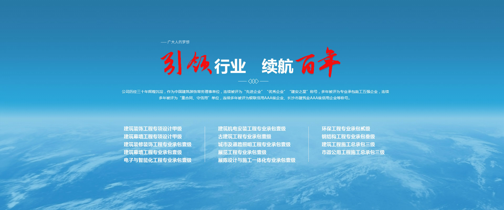 长沙q大建筑装饰有限公司是一家以建筑装饰、幕墙、工E设计、亮化、机c智能化、园林等Zg业,家装、业生产、徏材销售ؓ辅的大型l合企业?/p>